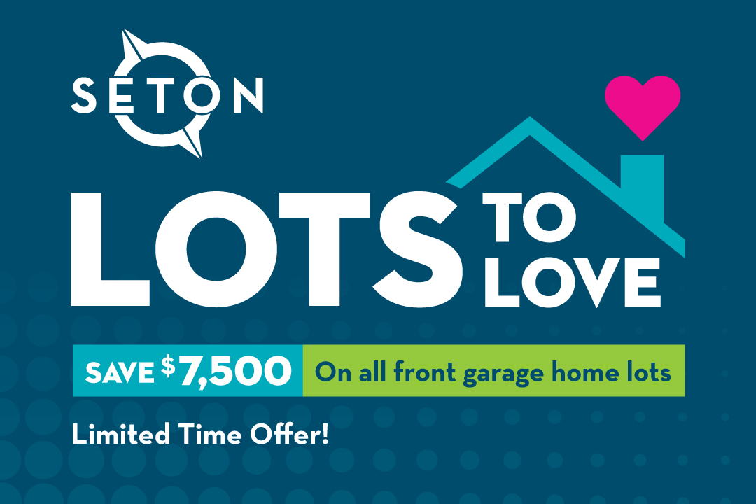 Visit Seton today and find Lots to Love. save $7500 on all front garage home lots. Visit the show homes or speak with a builder today to learn how you can save.